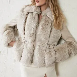 Beige Casual Women's Buckle Detail Fuzzy Coat