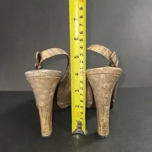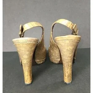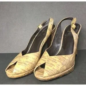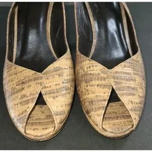 Stuart Weitzman Tan Textured Leather Slingback Peep Toe Heels Size 8W EUC
