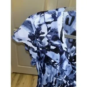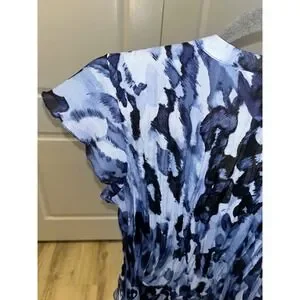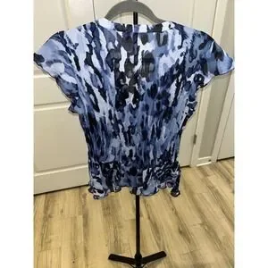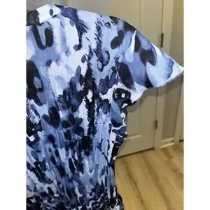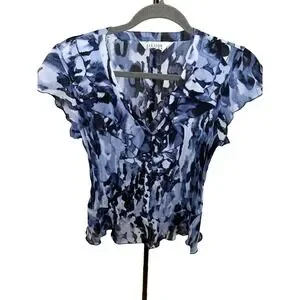 Y2k, Retro, Allison Taylor blouse, abstract print top, blue and white v-neck shirt, women's medium blouse, lightweight polyester top, casual office blouse, summer top, everyday wear blouse