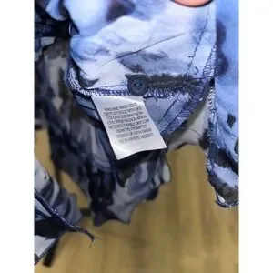 Allison Taylor Y2K Blue Black Abstract V-Neck Short Sleeve RetroBlouse Women's M