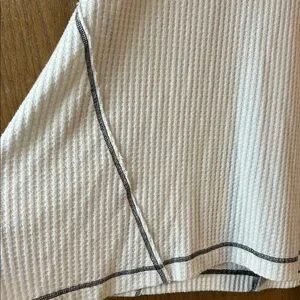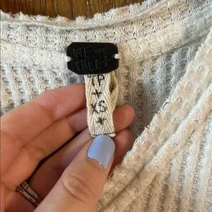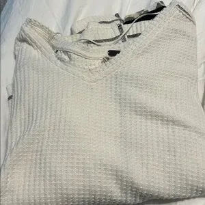Trendy off-the-shoulder sweater. White with black details. Perfect for casual outings.