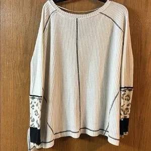 We The Free Off-the-Shoulder Oversized Sweater with Leopard Print Sleeves