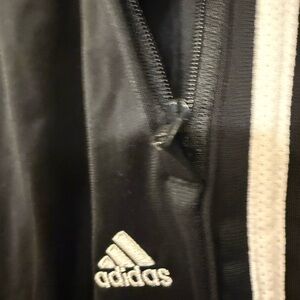 Comfortable black sweatpants featuring classic white accents. Perfect for active wear. Waist is 15 flat and inseam 30.