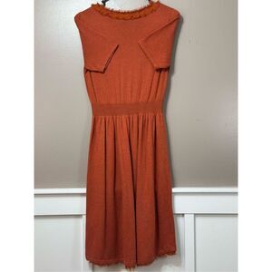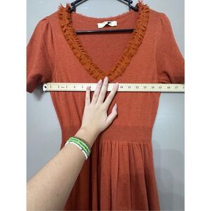Gorgeous Isabella Sinclair Jacinth sweater dress from Anthropologie. One of my all time favorites. So so soft, feels like wearing a cloud. Gorgeous rust burnt orange red color with ruffle fabric accent at v-neck and skirt hem.
