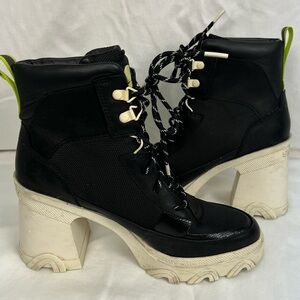 Sorel Brex Lace-up Booties in black, cream with lime green details.