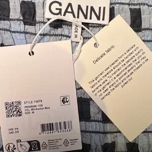 Keywords: Ganni, Smocked Top, Puff Sleeve, Checkered Blouse, Alaskan Blue, Button Up, Square Neck, Designer Top, Contemporary Fashion, Women's Top, Size S, Blouse, Checkered, Smocked