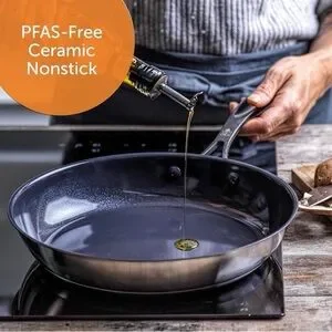 Experience effortless cooking with this sleek black frying pan. Its non-stick surface ensures easy food release and quick cleanup. Perfect for everyday use in your kitchen.