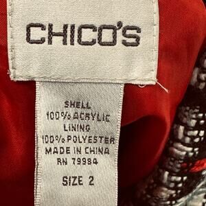 Chico's Bold Tweed Red, White Black Tan Jacket Coat Sz 2 (12)