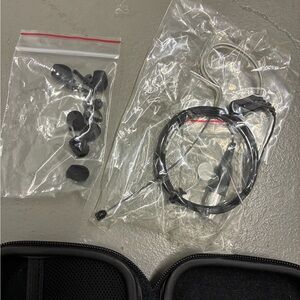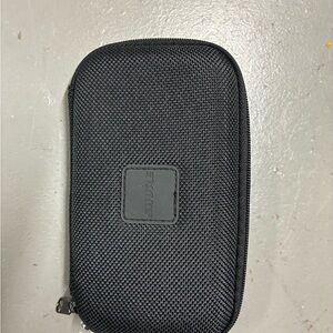 Compact Shure electronics case. Black exterior with silver accents. Durable and portable.