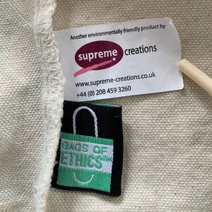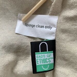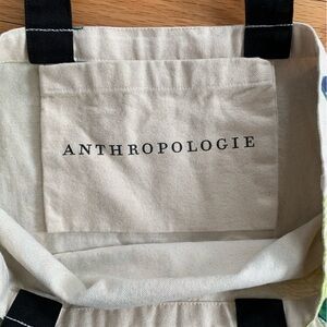 Unique Anthropologie Canvas Tote/Shopping Bag. Hand drawn tropical print. Natural color canvas with Green & blue floral print & black handles. Inside pocket with Anthropologie printed on it. Large H on the back and Zara (for artist Zara Fina Stasi) printed under one of the leaves. Excellent condition - no stains, clean canvas and bottom. Made by Supreme Creations (UK) Environmentally friendly product. "Bag of Ethics" Says Sponge clean only - but it's canvas so It's probably machine washable.