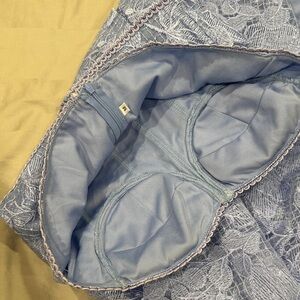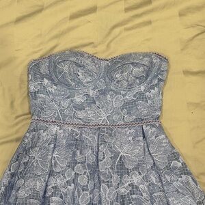 This charming light blue dress features a beautiful floral lace design, perfect for formal occasions. Its delicate style adds a touch of elegance to your child's wardrobe.
