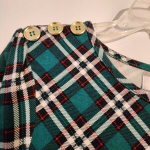 Kim Rogers Romy Green Red Boxy 3/4 Sleeve Blouse M High Low Hem