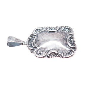 925 Sterling Silver Vintage Floral Repousse Oxidized Charm Pendant
