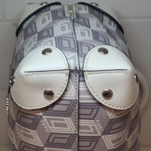 KARL LAGERFELD Valette Logo Leather Double Top Handle Bag WHITE/GRAY