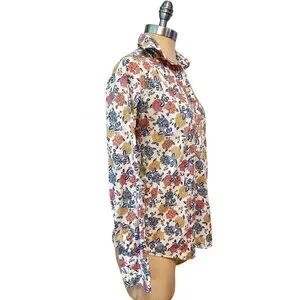 Ann Mashburn Womens Floral Button-Up Shirt Cotton Long Sleeve Small