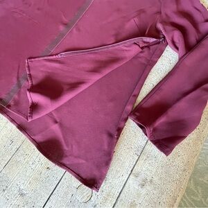 Lafayette 148 Silk & Leather Trim Blouse Burgundy Red Size 14 Large