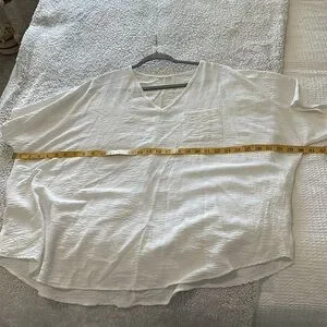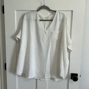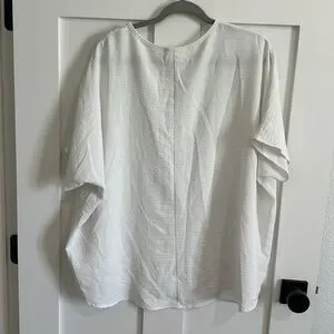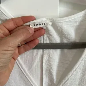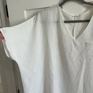 Jodifl Women's M Flutter Sleeve Pocket Tee Shirt White Crepe Texture Oversized
