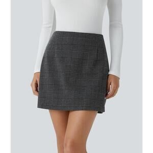 NWT Halara High Waisted 2-in-1 Houndstooth Plaid Mini Skirt Charcoal Black L