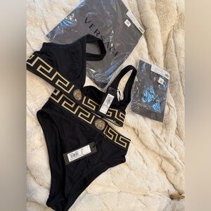 Chic black bra with bold gold accents. Iconic design for a luxurious feel.