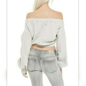 NWT! Cropped Off-the-Shoulder Grey Sweatshirt with Ballon Sleeves. Size M.
