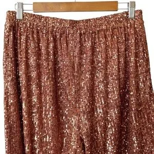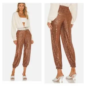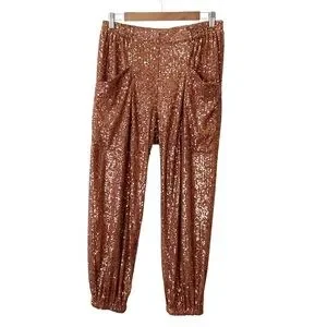 Free People Morelia Sequin Joggers Women’s SZ Medium in Metallic Bronze