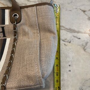 Stylish brown and tan tote bag with chain handles. Perfect for everyday use. Used twice.