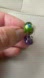 Set of two glass beads. One bead is green with multicolor accents. The other bead is blue with gold flecks. 2 Sterling Silver 925 Dichroic Lamp Art Glass Bead Charms for bracelet necklace excellent condition with manual wear see pictures for more detail details