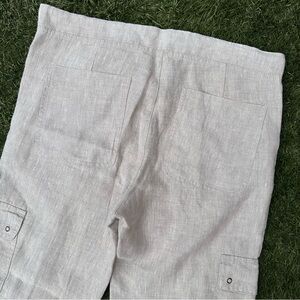 XCVI 100% Natural Linen Drawstring Relax Fit Cargo Pants Lagenlook Minimalist S