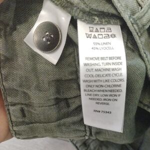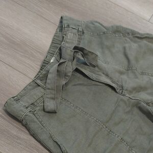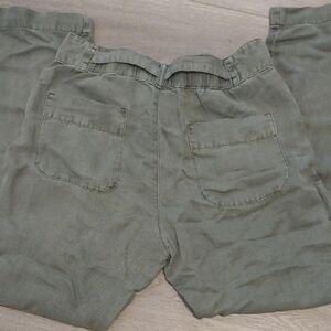 Olive green 55% linen pants. Pockets in the front and back. Removable belt. Comfy!
