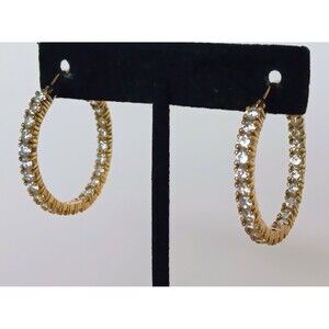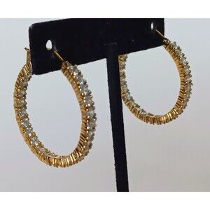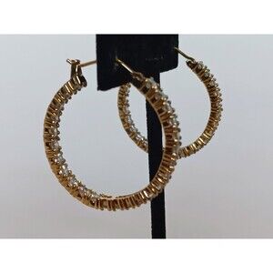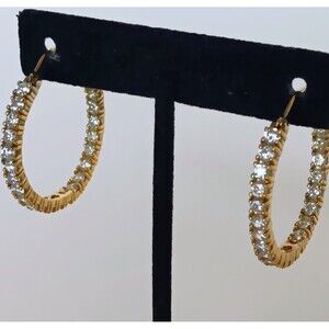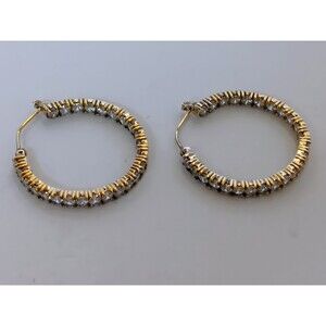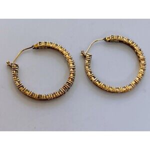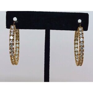 Vermeil ADI 925 Sterling Silver Cubic Zirconia Inside Out Hoop Earrings 1.25 in