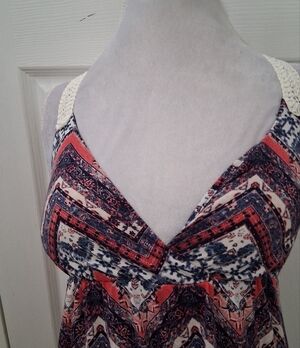 good condition, padded cups for stability, chevron pattern in pink, blue & purple, pit to pit 15" length 34"