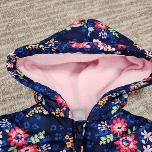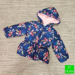 Little Me girls floral puffer hood heavyweight jacket blue pink size 2T
