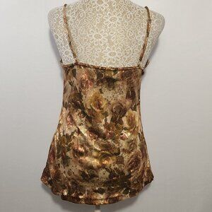 Daytrip Size Medium (6-8) Rose Gold Floral Metallic Thread Adjustable Spaghetti Strap V-Neck Tank Camisole Y2K Boho Cyber Grunge Casual Festival Hippie Gently Pre-Owned Excellent Condition Reasonable Offers Welcome