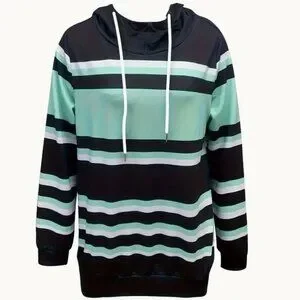 Small Color Block Striped Print Hoodie Casual Long Sleeve Drawstring Hoodies