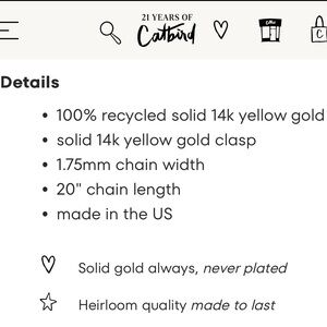 **SOLD** A classic beauty — Brand NEW in box — 20”L Catbird Lover's Gold Chain necklace ONLY, made from sustainable solid 14k gold with a solid yellow gold clasp. Crafted in the USA. Beautiful with your own charms on it too (not included). If you’re available to pick up in NYC, just message me 💞