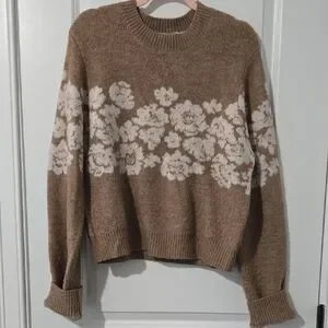 Cozy and stylish, this brown sweater features a beautiful floral pattern. Perfect for adding a touch of elegance to your wardrobe.