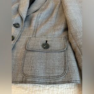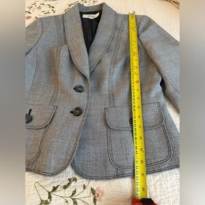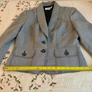 Step into timeless sophistication with this Le Suit gray tailored blazer — a piece that embodies confidence, grace, and quiet luxury. Crafted with meticulous detail, its structured silhouette flatters every curve, creating a refined, powerful presence.
