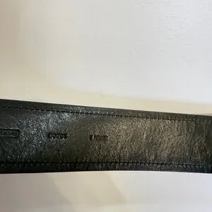 Elegant black leather belt by Coach. Features a sleek silver buckle.