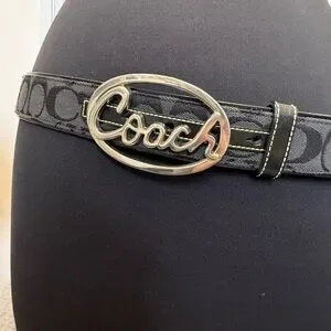 COACH SIGNATURE BELT LOGO BUCKLE LARGE BLACK SILVER