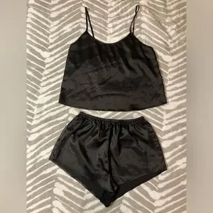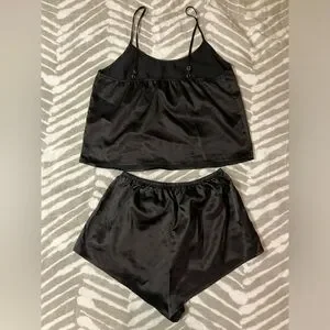 Satin black sleepwear set. Very light use, excellent condition. No brand or size but fits a small!