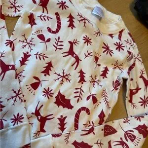 HANNA ANDERSSON 130 8 Reindeer Red Cream Long John Pajama Holiday Christmas New