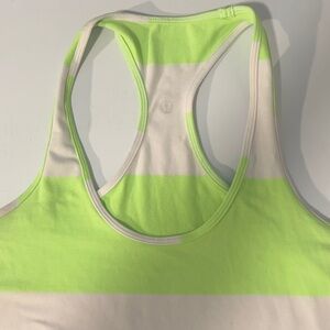 Lululemon Women's Neon Green and White Striped Tank Top Size 6