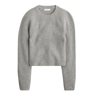 NEW J. Crew Raglan Fitted Waist Ribbed Crewneck Sweater Plus Size XXL Gray (Heathered Ash) Cropped Length