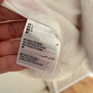 Elegant cream faux fur jacket. Perfect for a stylish look. Worn for about 20 min for wedding photos then dry cleaned. This coat is gorgeous for winter events.
