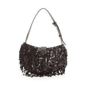 Staud's "Alana" bag, crescent-shaped and entirely decorated with beads, fringes and an adjustable shoulder strap, with a moon-shaped buckle and a magnetic closure.<br/>W.20 X H.30 X D.4 cm 100%VE GLASS BEADS Made in: IN
