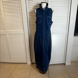 Elevate your style with this chic sleeveless denim midi dress. Perfect for any occasion, this dress offers a flattering fit and timeless appeal. This midi dress by Pilcro is crafted from 82% cotton, 13% lyocell, 4% elastomultiester, and 1% elastane. It features chest patch pockets, seam details, and a front zip.
