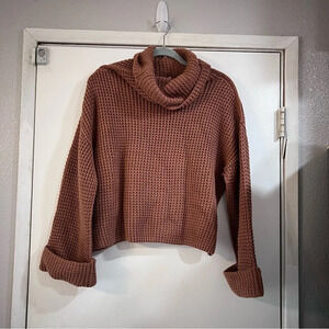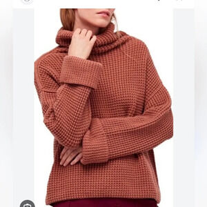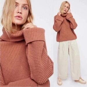 Free People Park City Pullover Terracota Chunky Knit Oversized Waffle Cozy XS