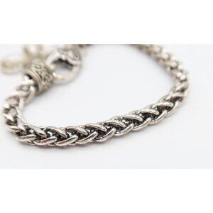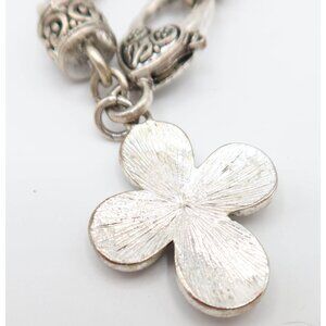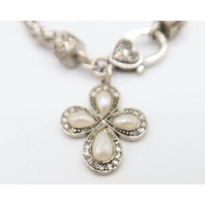 • Byzantine Style Silver Tone Faux Pearl Rhinestone Cross Charm Chain Bracelet