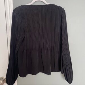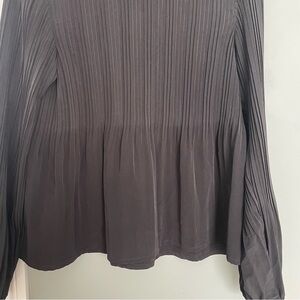 Maje "Lockin" Crepe Boat Neck Long Sleeve Black Pleated Blouse