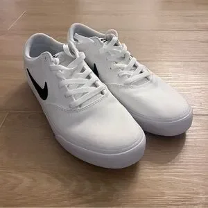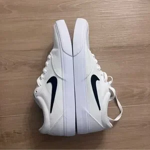 Classic Nike sneakers in white with black accents. Comfortable and stylish for everyday wear.